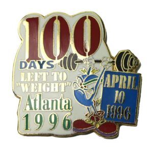 Atlanta 1996 Summer Olympic Games 100 Days Left To Weight Izzy Mascot Countdown Pin