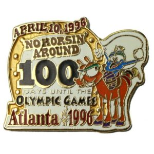Atlanta 1996 Summer Olympic Games 100 Days No Horsin Around Izzy Mascot Countdown Pin