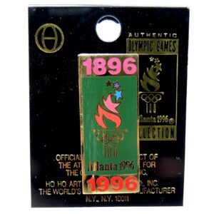 Atlanta 1996 Summer Olympic Games 1896-1996 Rectangle Torch Lapel Pin