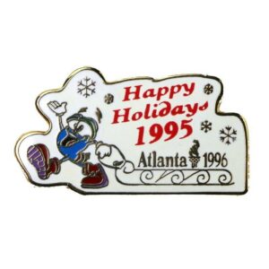 Atlanta 1996 Summer Olympic Games Christmas Happy Holidays 1995 Sled Izzy Mascot Pin