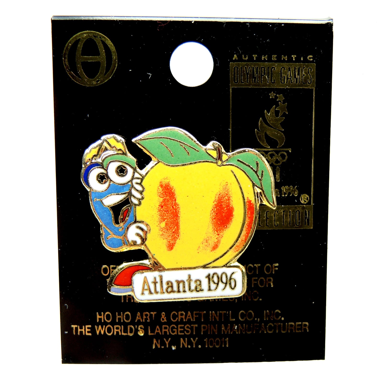 This beautiful Atlanta 1996 Summer Olympic Games Izzy Mascot Peach Lapel Pin is a must-have for any collection.