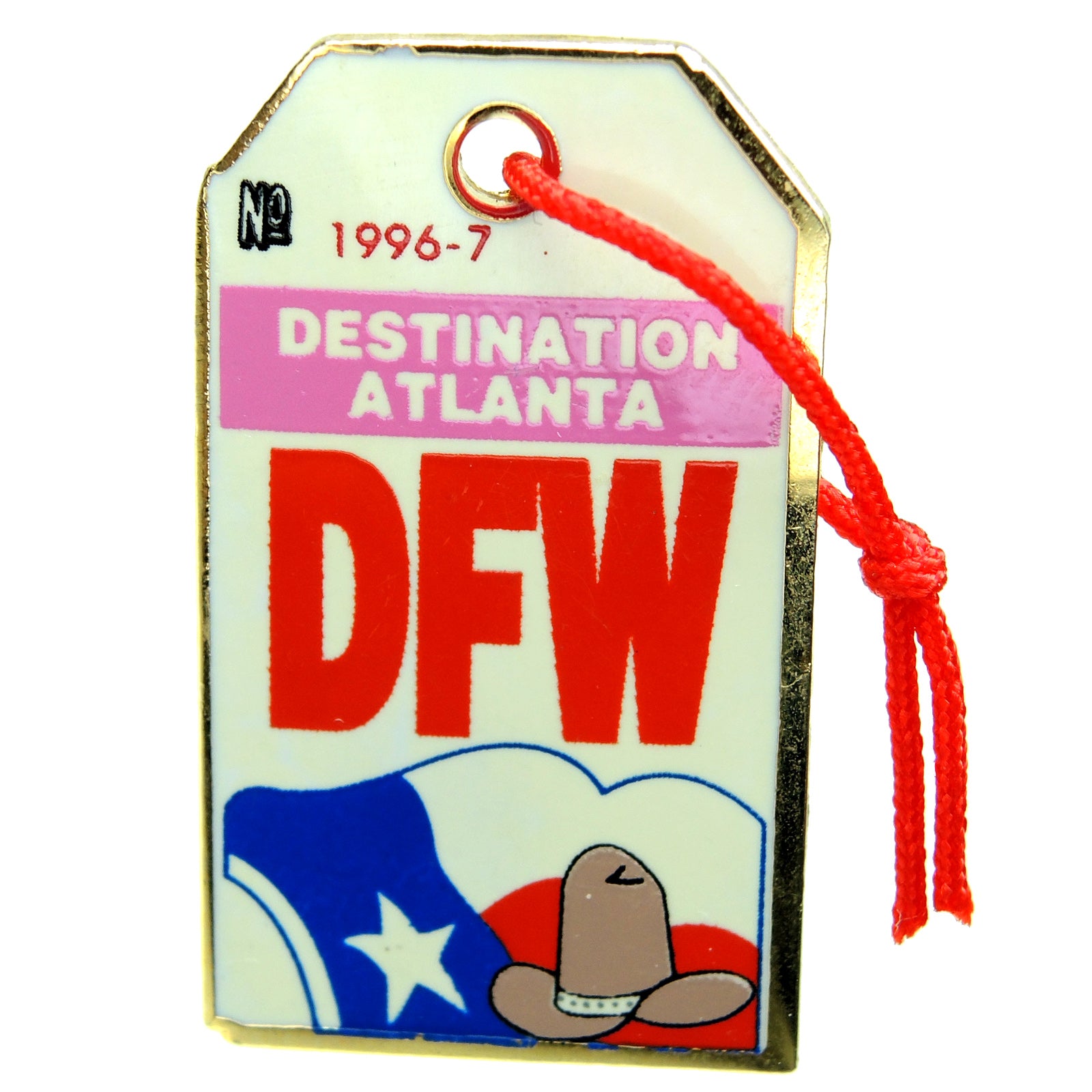 Atlanta 1996 Summer Olympic Games Luggage Tag DFW Dallas Texas Lapel Pin