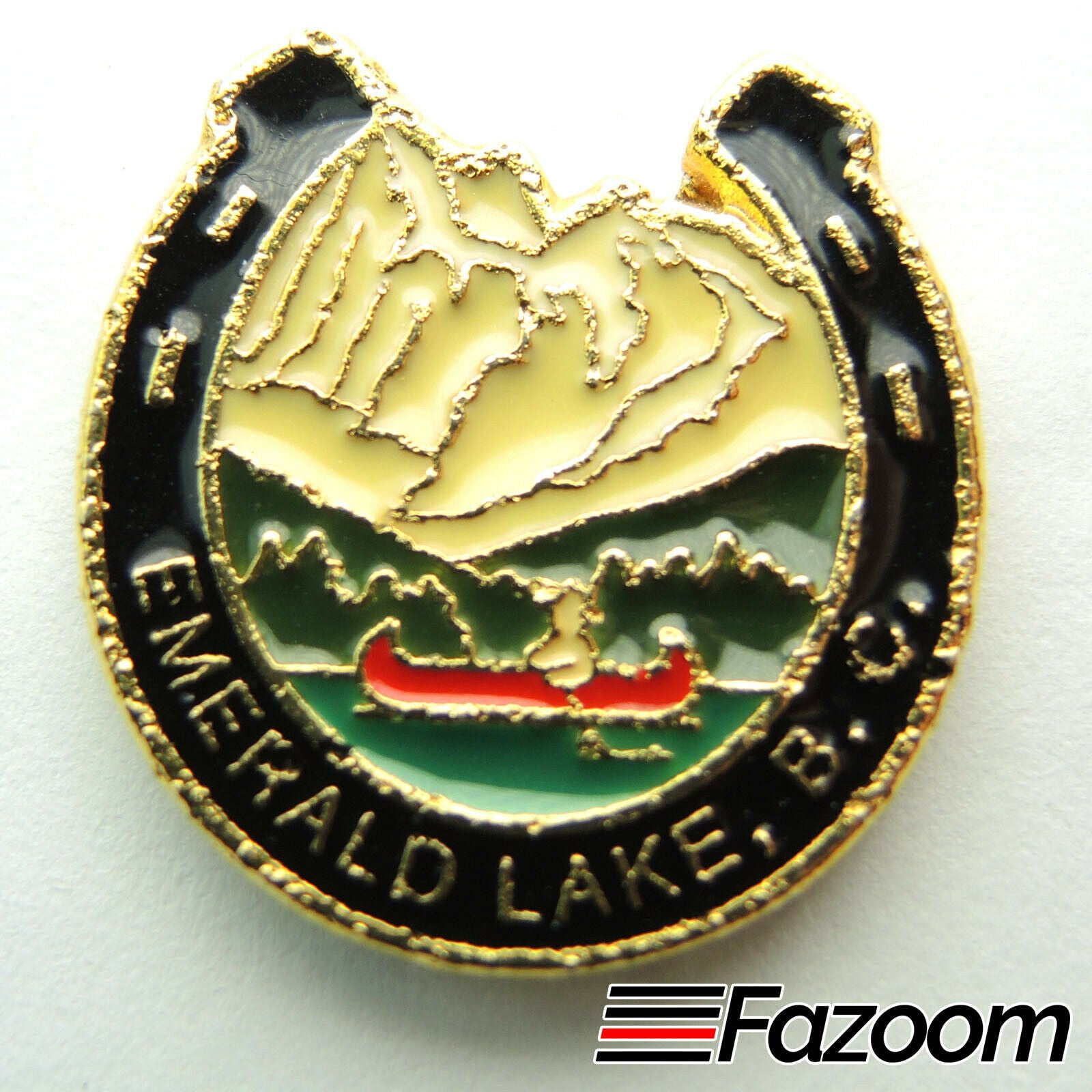 Emerald Lake, B.C. Horseshoe Canoe Mountains Gold Tone Souvenir Lapel Pin
