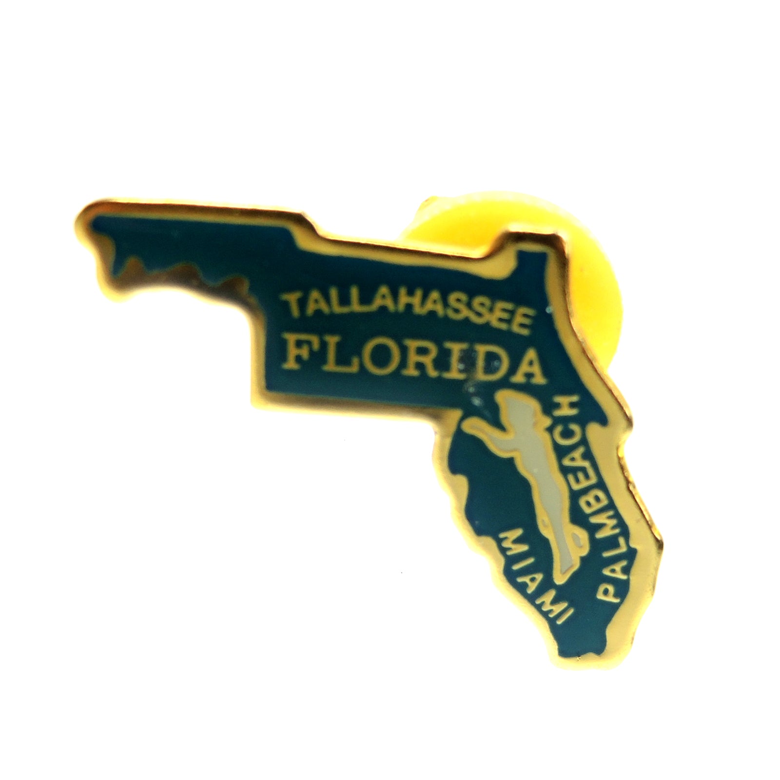 This lapel pin features an outline of the state of Florida, highlighting the cities of Tallahassee, Miami, Palm Beach, and more. Its perfect for adding a touch of local pride to your jacket or bag. The pin is made of high-quality materials and has a secure clasp to keep it in place.