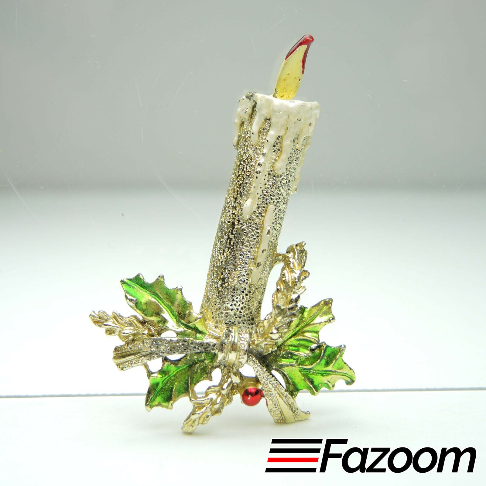 Gerrys Candle & Holly Gold-tone Christmas Brooch Lapel Pin Vintage
