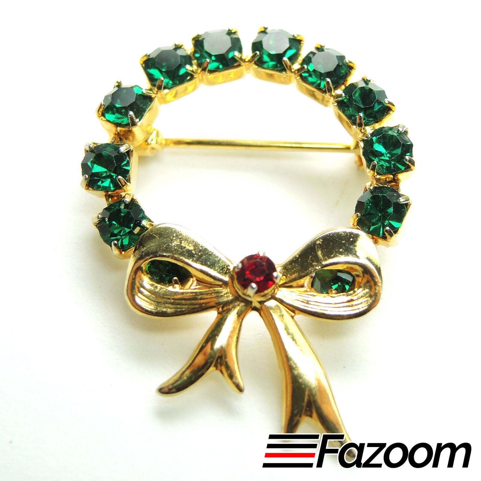 This beautiful Gold-Tone Christmas Wreath Brooch Lapel Pin is a must-have for any collection.
