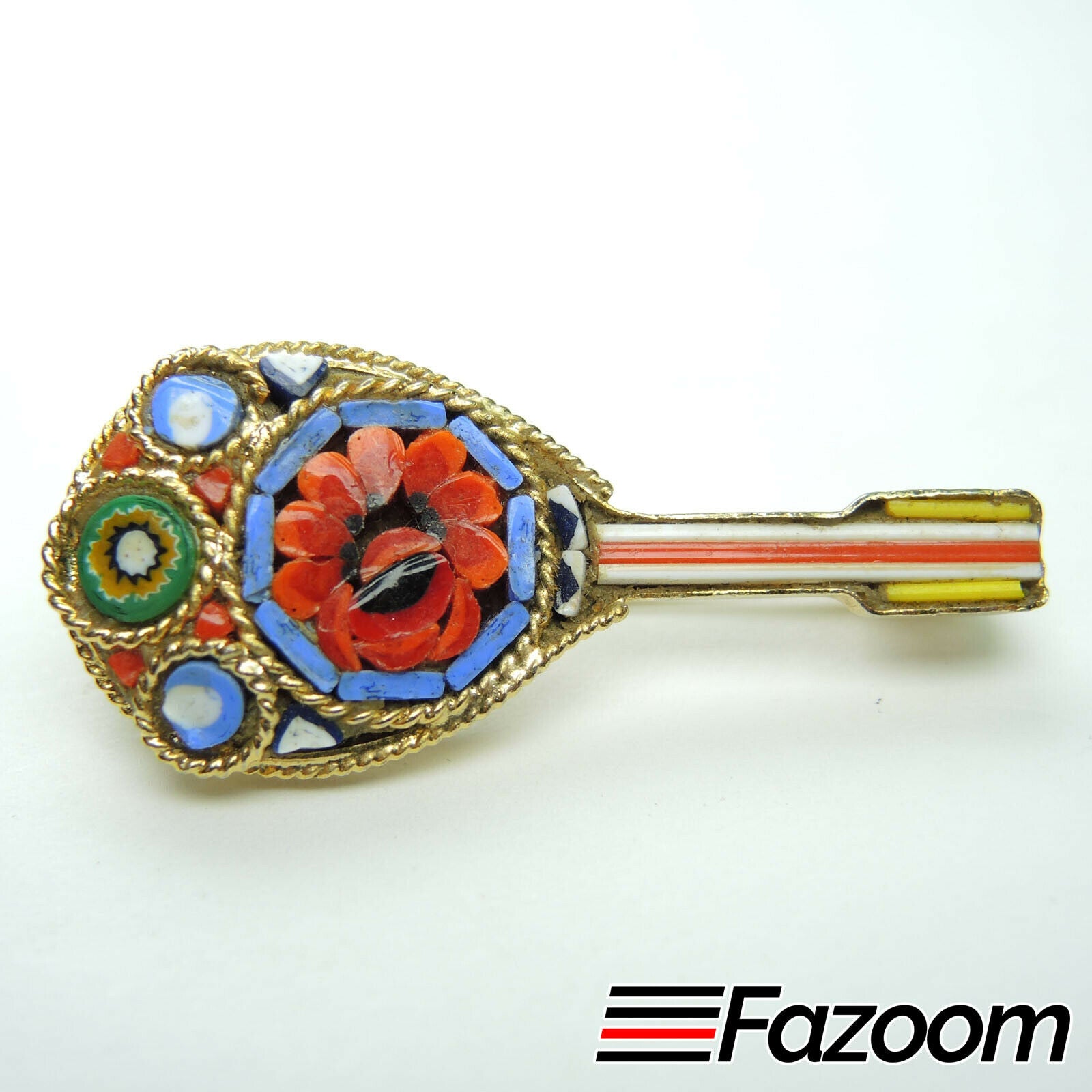 This beautiful Gold-Tone Inlaid Instrument Brooch Lapel Pin Vintage is a must-have for any collection.