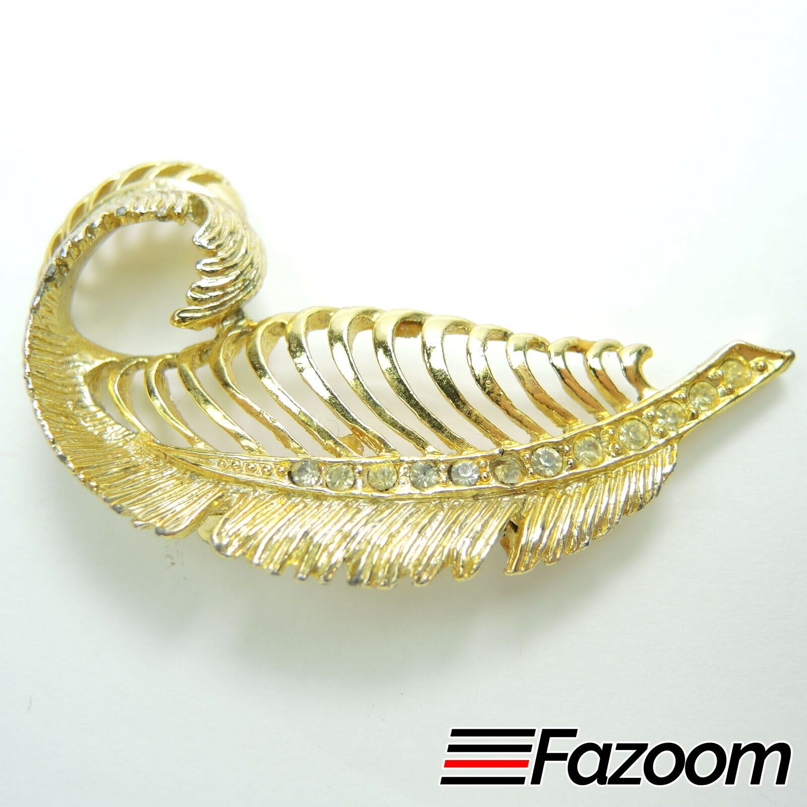 This beautiful Gold-Tone Leaf with Rhinestones Brooch Lapel Pin Vintage is a must-have for any collection.
