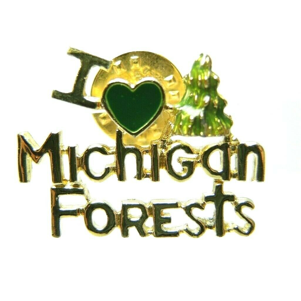 I Love Michigan Forests Pine Tree Souvenir Gold Tone Lapel Pin