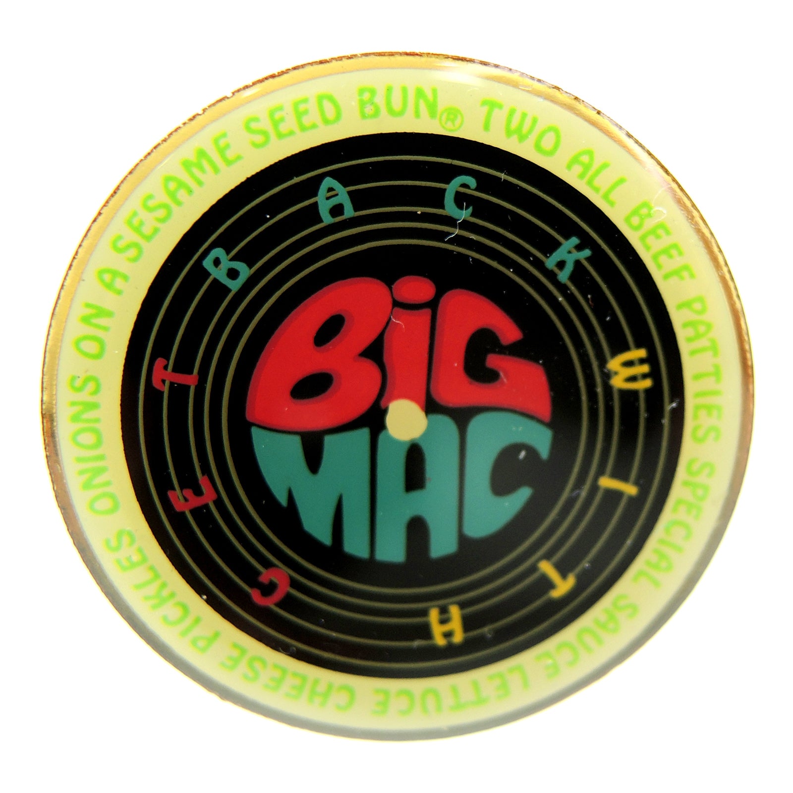 McDonald’s Get Back with Big Mac Record Lapel Pin. This lapel pin is a fun and unique way to show your love for the classic Big Mac sandwich from McDonald’s. The pin features the iconic Big Mac logo in vibrant colors, making it a great addition to any collection or outfit.