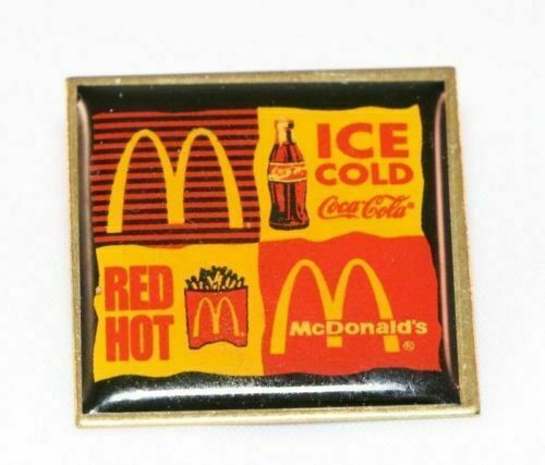 This vintage McDonald’s lapel pin is a must-have for collectors of fast food memorabilia. The pin showcases the classic golden arches logo alongside the Coca-Cola logo, emphasizing the popular combination of ice cold drinks and red hot fries. As an employee or crew member pin, it adds a touch of nostalgia to any collection.