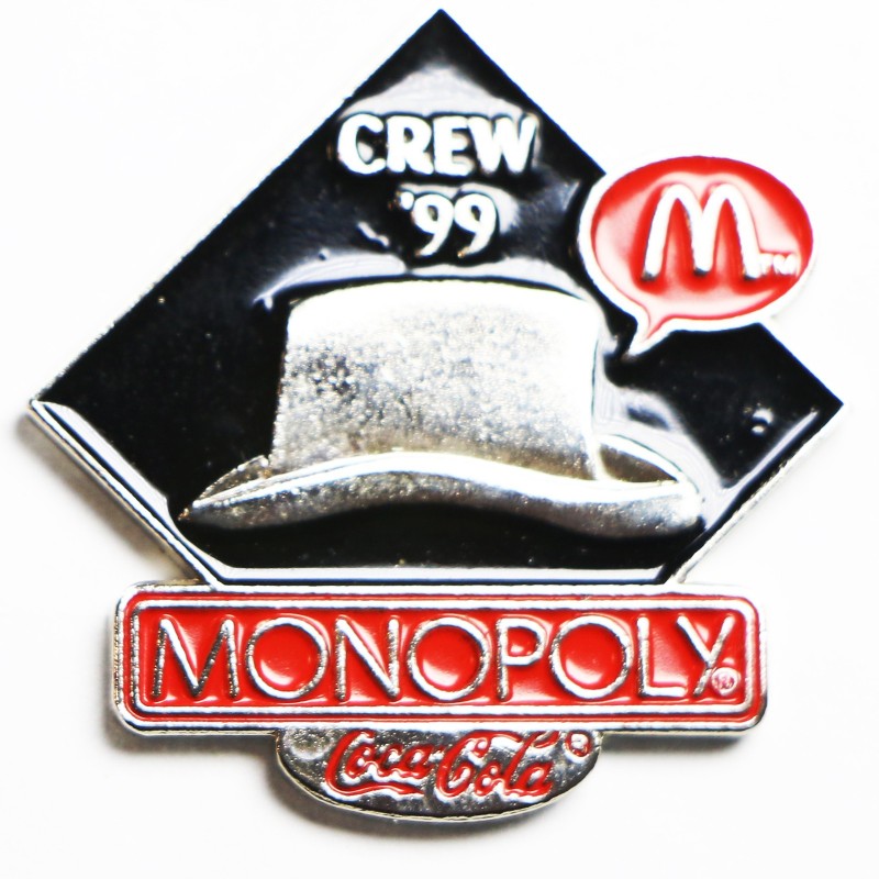 The McDonald’s Monopoly 1999 Crew Top Hat Coca-Cola Lapel Pin is a collectible item for fans of the fast food chain and the popular board game.