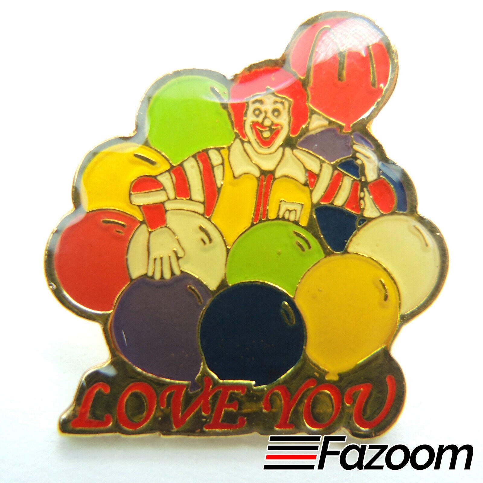 This is a vintage McDonald’s Ronald McDonald Love You lapel pin. It features the iconic clown holding a bunch of colorful balloons with the words Love You written below. The pin is made of enamel and has a standard pin back for wearing on clothing or accessories. This collectible item is perfect for fans of McDonald’s, Ronald McDonald, or vintage fast food memorabilia.