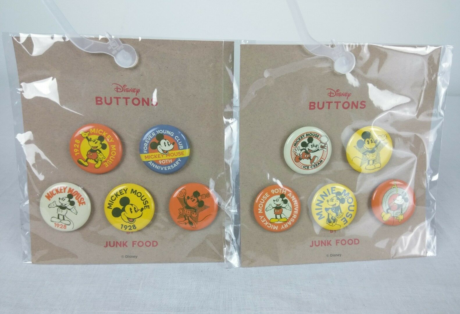 Mickey Mouse Pin Back 10 Button Set 2018 Disney Junk Food 90th Anniversary