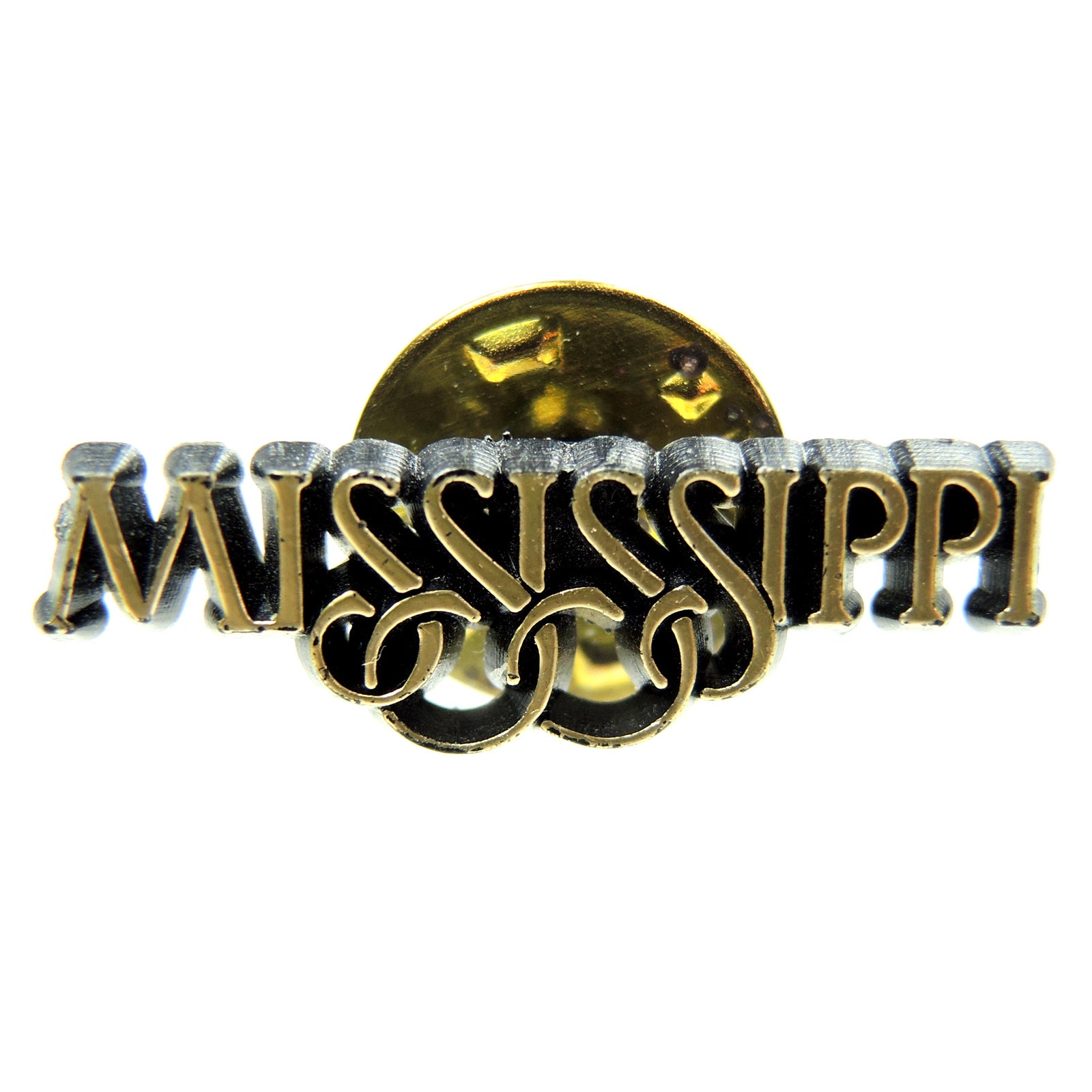 Show your state pride with this Mississippi lapel pin! This gold and silver plastic pin features the word Mississippi in a cursive font. Its perfect for adding a touch of southern charm to any outfit. The pin measures approximately 1.5 inches wide by 0.5 inches tall, making it a subtle yet stylish accessory. Whether youre a native Mississippian or just visiting the Magnolia State, this lapel pin is a great way to show your love for Mississippi.