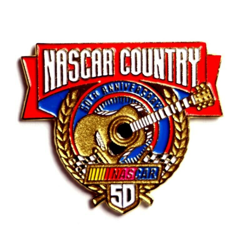 The NASCAR Country 50th Anniversary 1998 Lapel Pin is a collectible item that marks the 50th anniversary of the National Association for Stock Car Auto Racing (NASCAR) in 1998. The pin showcases a guitar, symbolizing the strong connection between country music and NASCAR, as well as the iconic NASCAR logo. This lapel pin is a popular collectible item among NASCAR fans and enthusiasts of country music.