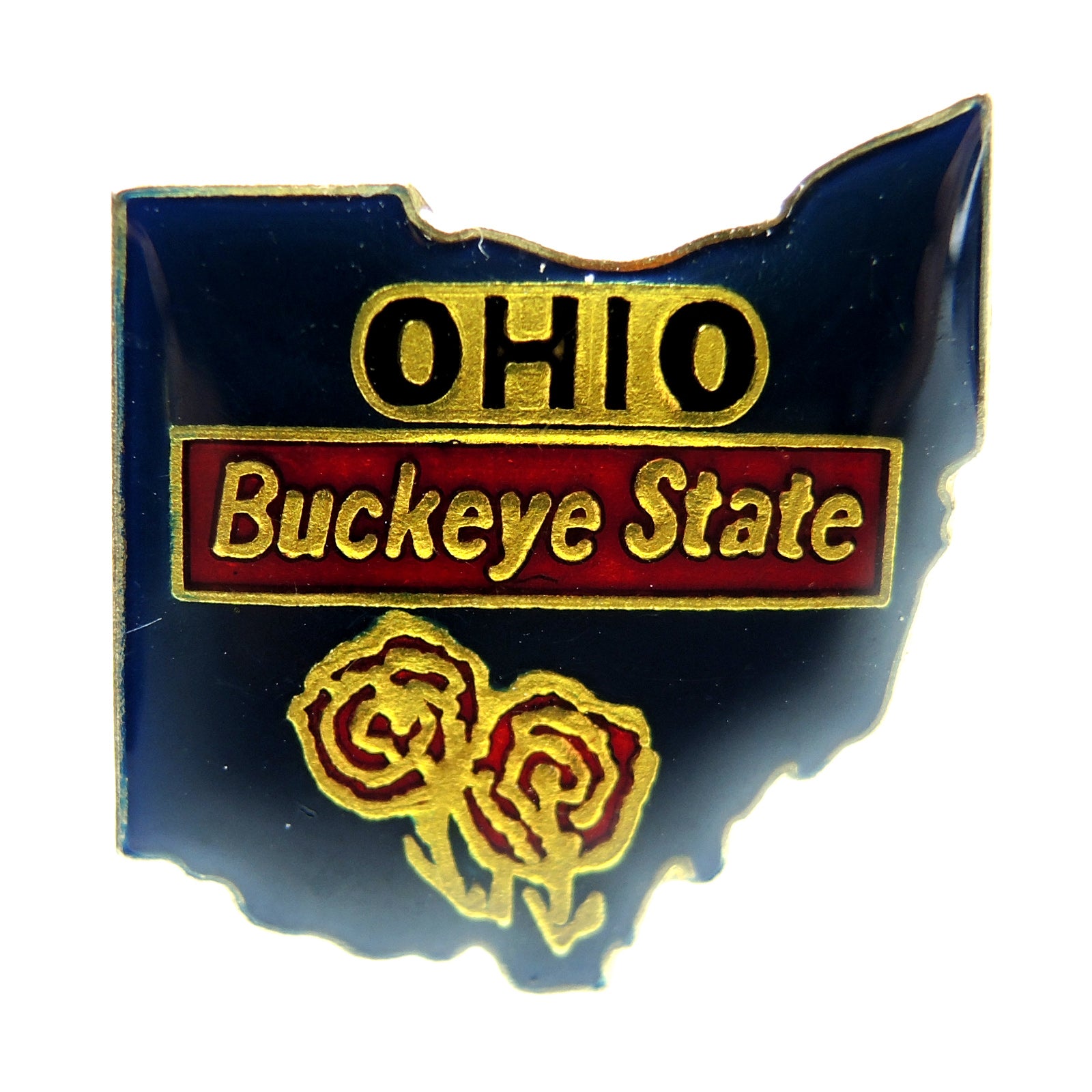 The Ohio Buckeye State Red Carnation Lapel Pin is a beautiful and meaningful accessory that represents the state of Ohio. This pin features the shape of the state of Ohio with the words Ohio Buckeye State inscribed on it. The design is completed with two red carnations, which are the official state flower of Ohio.