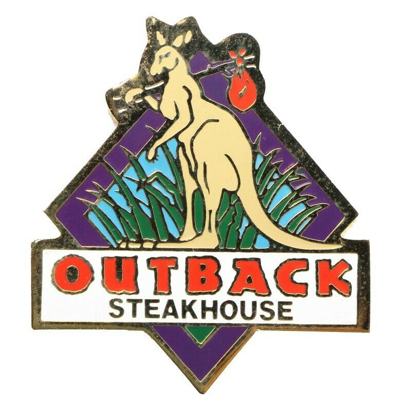 This Outback Steakhouse Hobo Kangaroo Diamond Lapel Pin is a fun and unique accessory for any fan of the popular restaurant chain. The pin features a colorful illustration of a kangaroo holding a boomerang, set against a purple diamond-shaped background with the words Outback Steakhouse written in bold red letters. The pin measures approximately 1.5 inches by 1.5 inches and has a standard pin back for easy attachment to clothing or accessories.