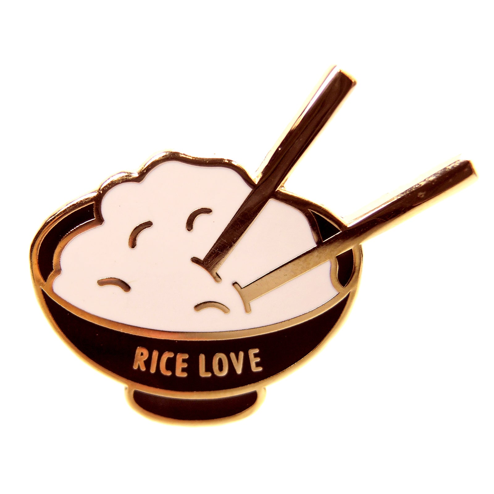 This lapel pin features a bowl of rice with chopsticks, symbolizing love for rice. It is a perfect accessory for anyone who enjoys Asian cuisine and wants to show their appreciation for this staple food.