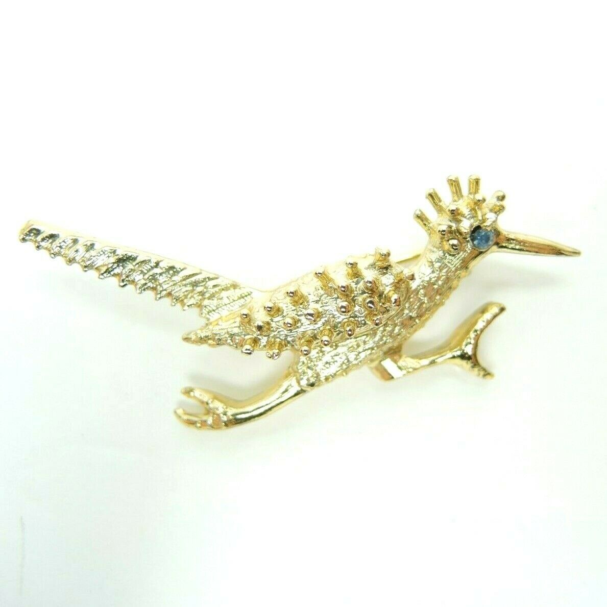 This beautiful Roadrunner 2-inch Vintage Unsigned Gold-Tone Brooch Lapel Pin is a must-have for any collection.