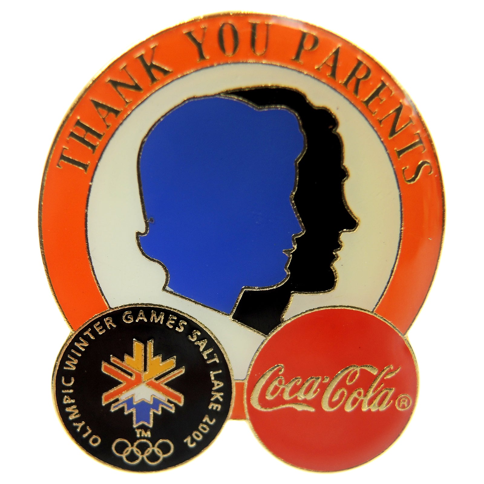 This beautiful Salt Lake City 2002 Winter Olympic Games Coca-Cola Thank You Parents Lapel Pin is a must-have for any collection.