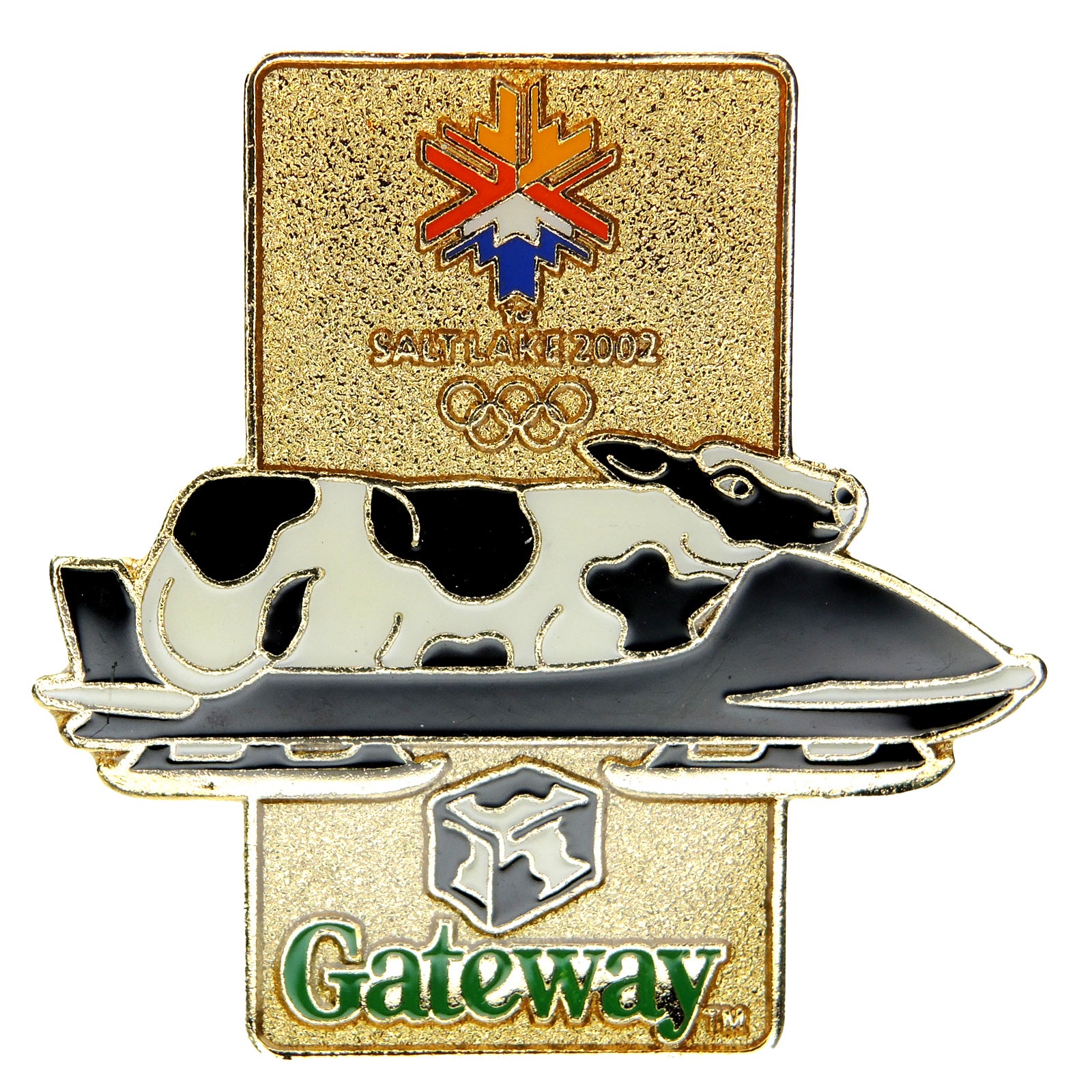 Salt Lake City 2002 Winter Olympic Games Gateway Cow Sledding Sponsor Lapel Pin