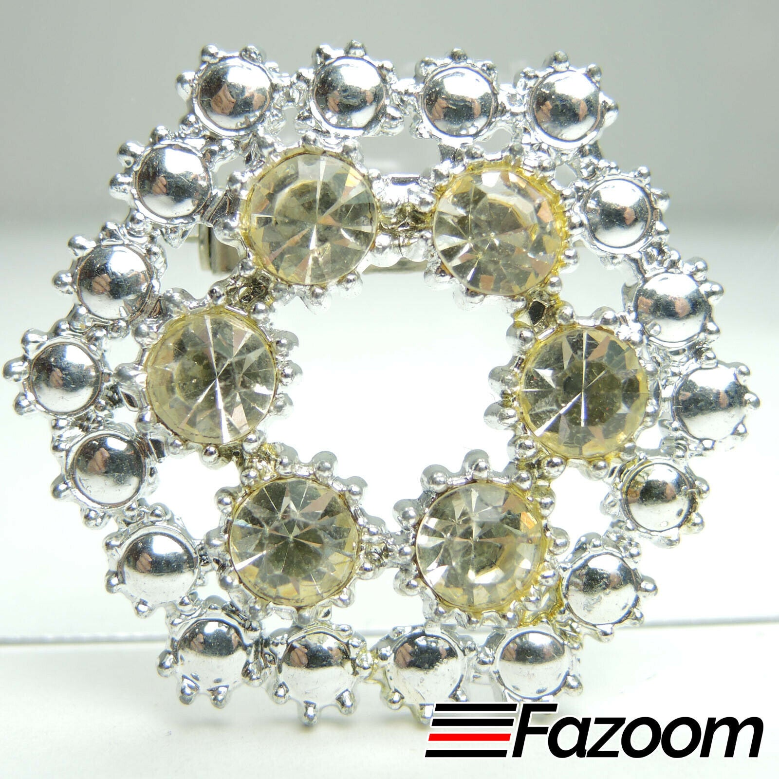 Silver-Tone Flower Brooch Lapel Pin with Rhinestones Vintage