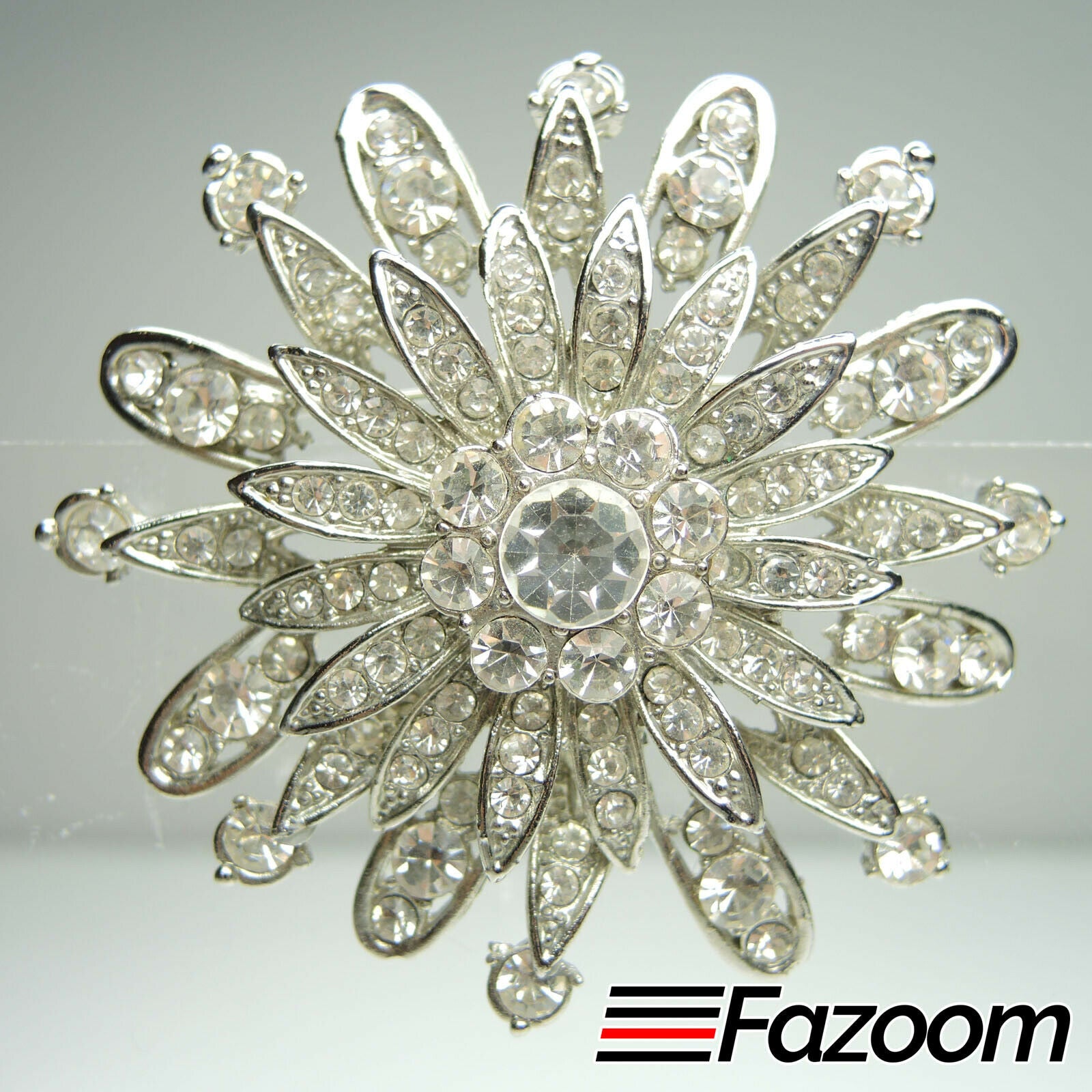 This beautiful Silver-Tone Large Star Flower Brooch Lapel Pin with Rhinestones Vintage is a must-have for any collection.