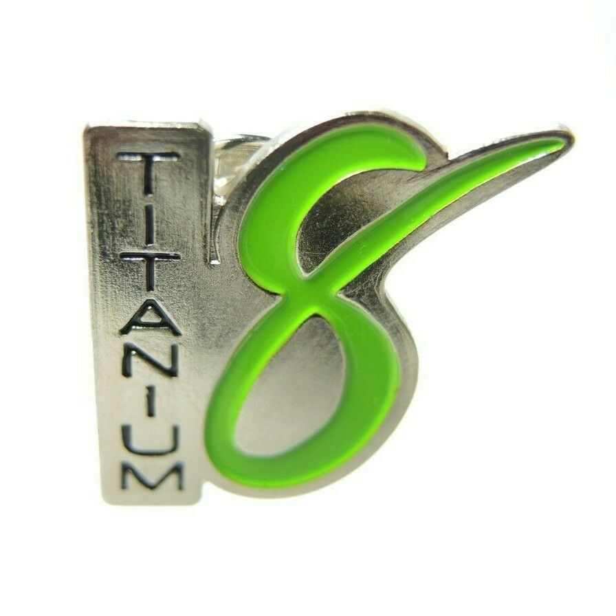 Add a touch of style to your wardrobe with this Titanium 8 logo silver tone lapel pin. This pin features the iconic Titanium 8 logo in green and silver, making it a perfect accessory for any outfit.