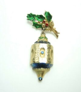 Christmas Ornament Holly Dangle 2.7-inch Unsigned Gold-Tone Brooch