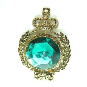 Crest Crown Faux Gem 2.2-inch Unsigned Gold-Tone Brooch