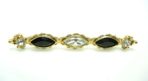 Faux Rhinestone Jewels 3.3-inch Wide Vintage Unsigned Gold-Tone Brooch Lapel Pin