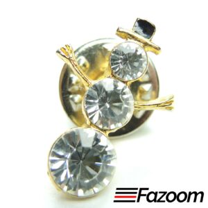 Gold-Tone Christmas Small Snowman Brooch Lapel Pin with Rhinestones