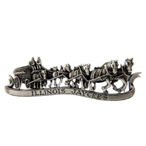 Lapel pins from various civic and service organizations, including the Jaycees, Elks, and more.