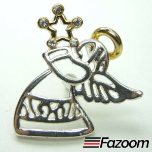 Silver-Tone Angel and Star Lapel Pin with Rhinestones