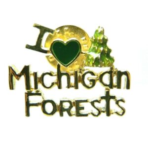 Commemorative pins from the Great Lakes State. Highlights include the state outline, various lake motifs, and Michigan landmark designs.