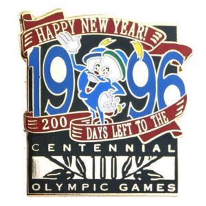 Atlanta 1996 Summer Olympic Games Happy New Year 1996 200 Days Countdown Mascot Pin