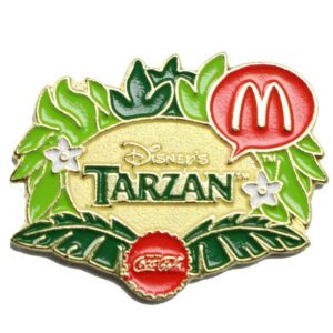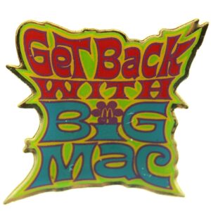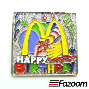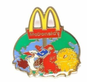 A collection of lapel pins from various dining establishments, fast-food chains, and iconic restaurant brands.